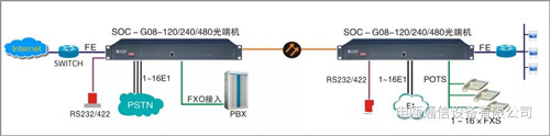 目前在高速公路、交通、電子警察、監(jiān)控、安防、工業(yè)自動化、電力、海關(guān)、水利、銀行等領(lǐng)域,視頻圖像、音頻、數(shù)據(jù)、以太網(wǎng)等光端機(jī)已開始普遍大量應(yīng)用。圖一是光端機(jī)的一個典型應(yīng)用。