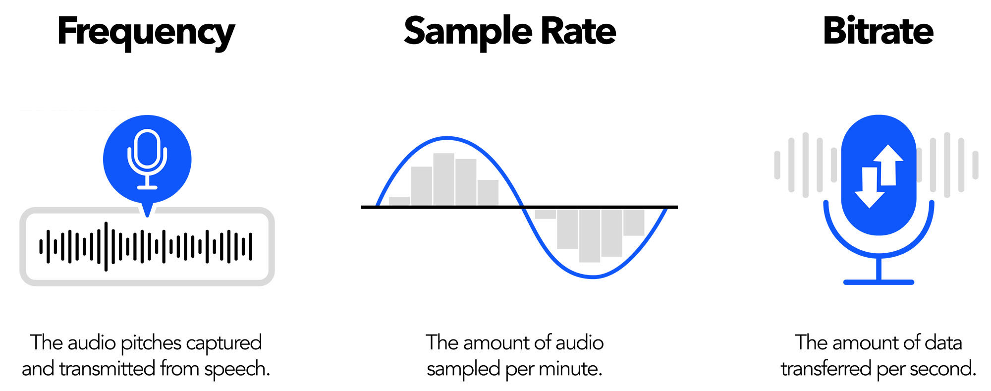 采樣率是編解碼器每秒為壓縮和傳輸最準確的頻率而采集的音頻采樣數。采樣率越高,音頻質量越好。雖然傳統的PSTN編解碼器的采樣率約為每秒8,000個樣本,但高清語音編解碼器的采樣率為每秒16,000個甚至高達48,000個樣本,從而獲得更準確的聲音。