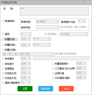 (4) 支持分機(jī)業(yè)務(wù)設(shè)定、查詢。操作方式:右鍵選中的用戶方塊,選擇查看分機(jī)業(yè)務(wù)。
